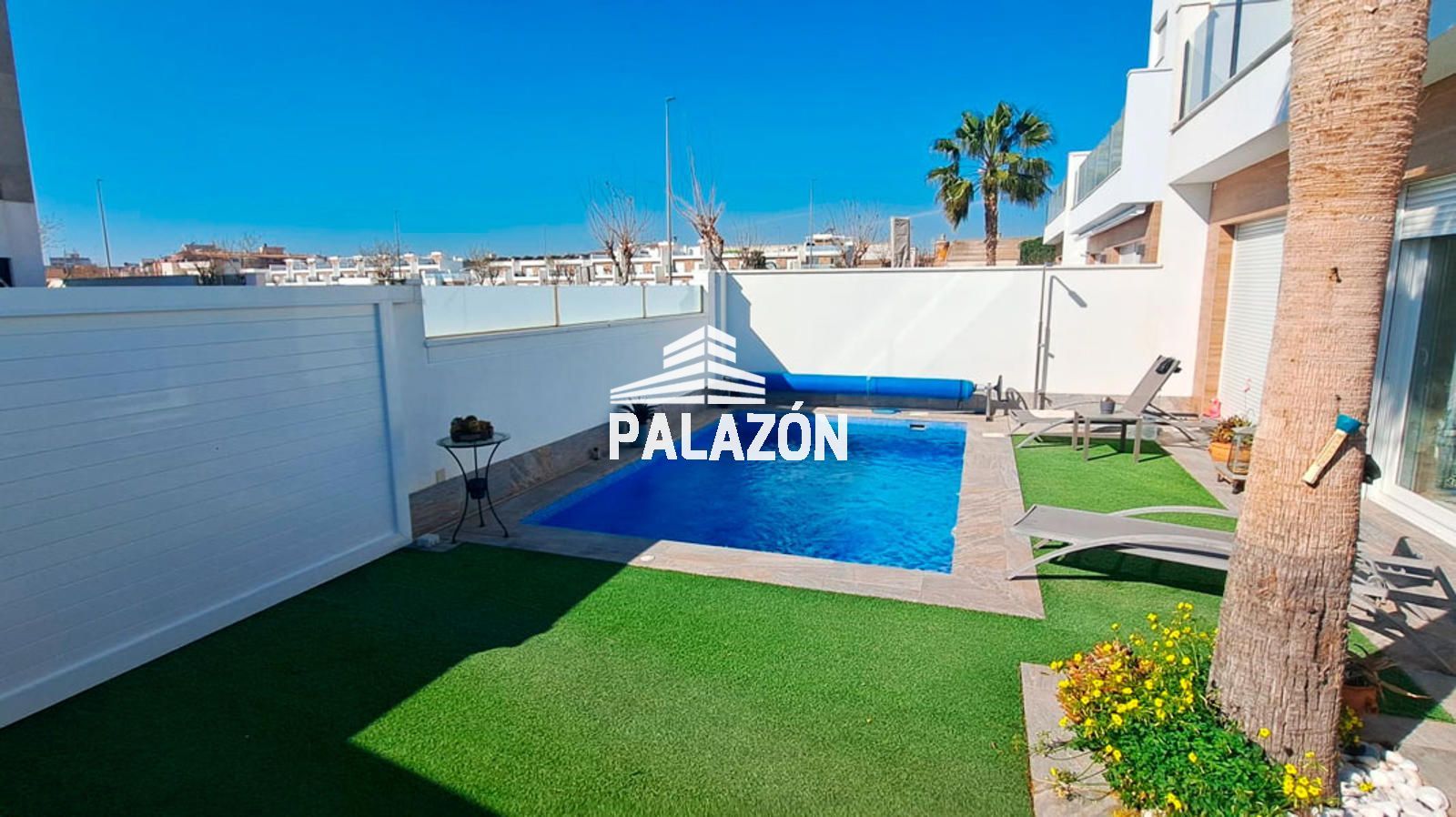 Vila moderna orientada al sud a Pilar de la Horadada, construïda el 2020 i en excel·lent estat. Disposa de 117 m², amb 3 dormitoris i 2 banys, ideal com a habitatge habitual, de vacances o inversió. Ofereix un interior lluminós amb saló acollidor, cuina moderna i distribució funcional. Equipada amb aire condicionat, persianes elèctriques i sistema de domòtica per a més comoditat.