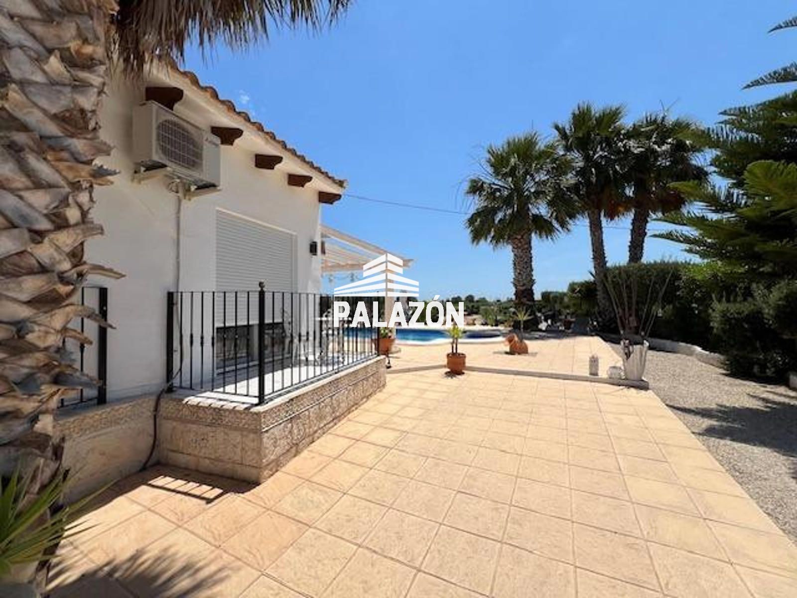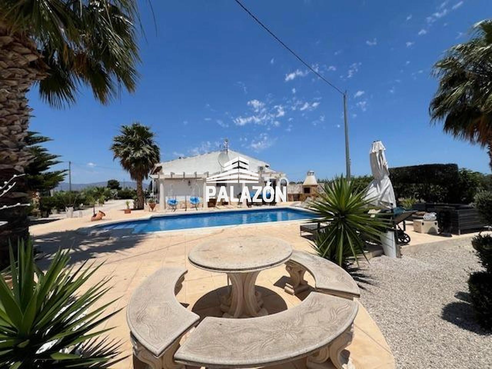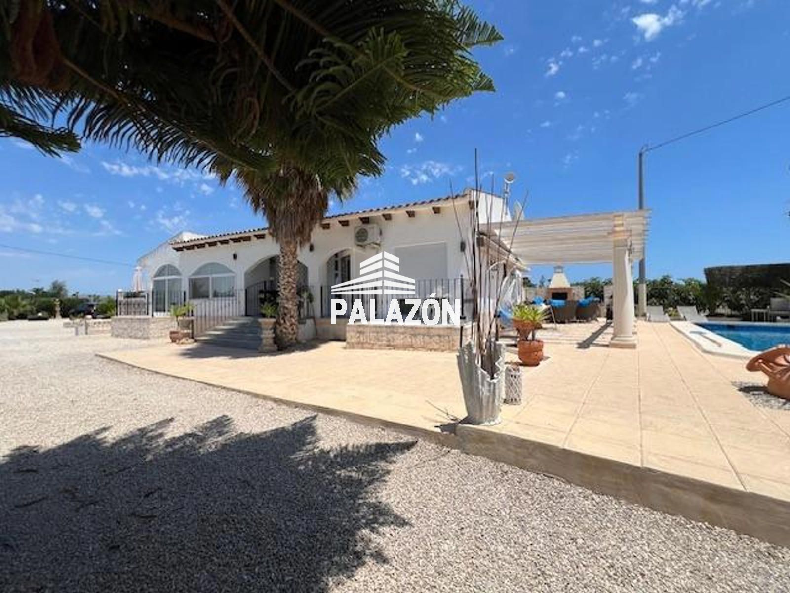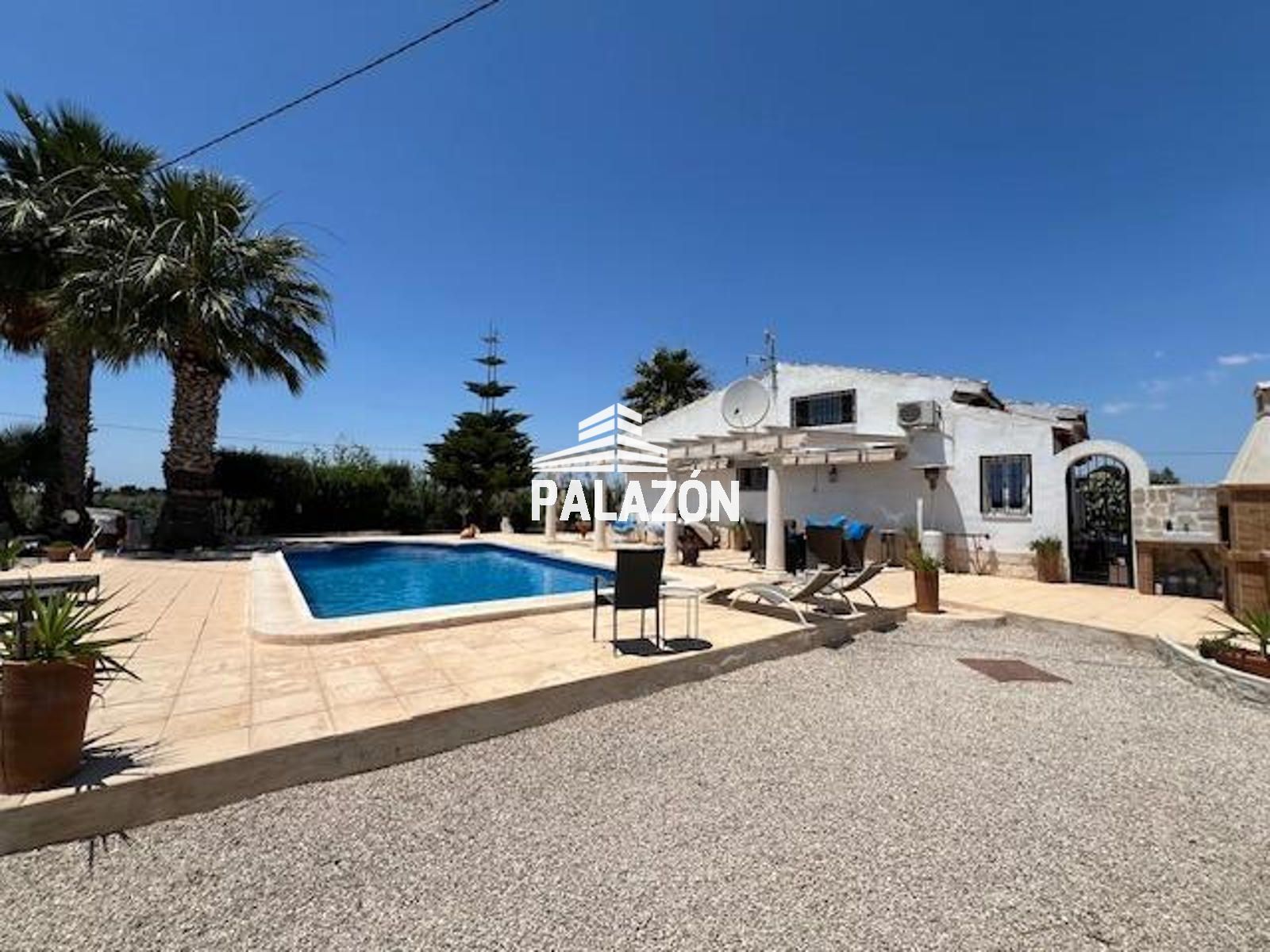 Chalet en venta en Dolores (Alicante), ubicada en un entorno rural tranquilo y privado, sobre una parcela de 2.698 m². La vivienda, construida en 2006, cuenta con 179 m² y está lista para entrar a vivir. Dispone de 3 dormitorios (dos dobles y uno tipo altillo), todos con baño en suite, además de un cuarto baño adicional. Destaca su amplio salón-comedor con gran luminosidad y estufa de leña, junto a una cocina totalmente equipada con isla y electrodomésticos. En el exterior encontramos cuidados jardines con palmeras y olivos, piscina privada, zona de barbacoa, amplias terrazas y patios. La propiedad ofrece aire acondicionado, buena orientación suroeste y un entorno ideal para disfrutar de privacidad y confort.