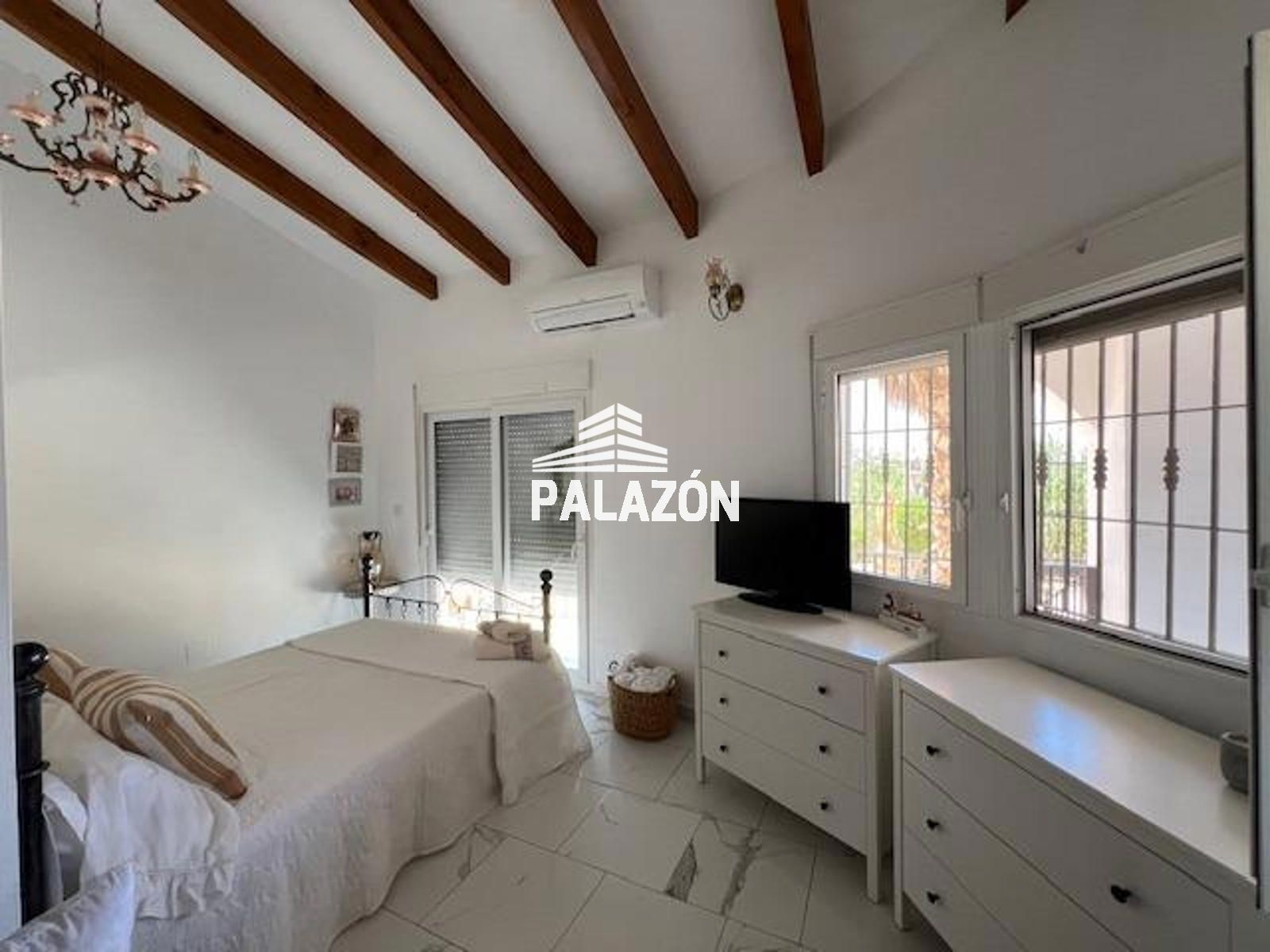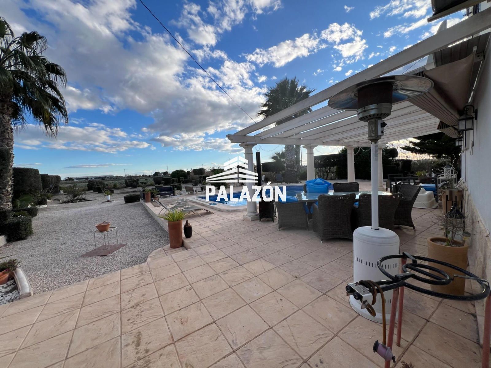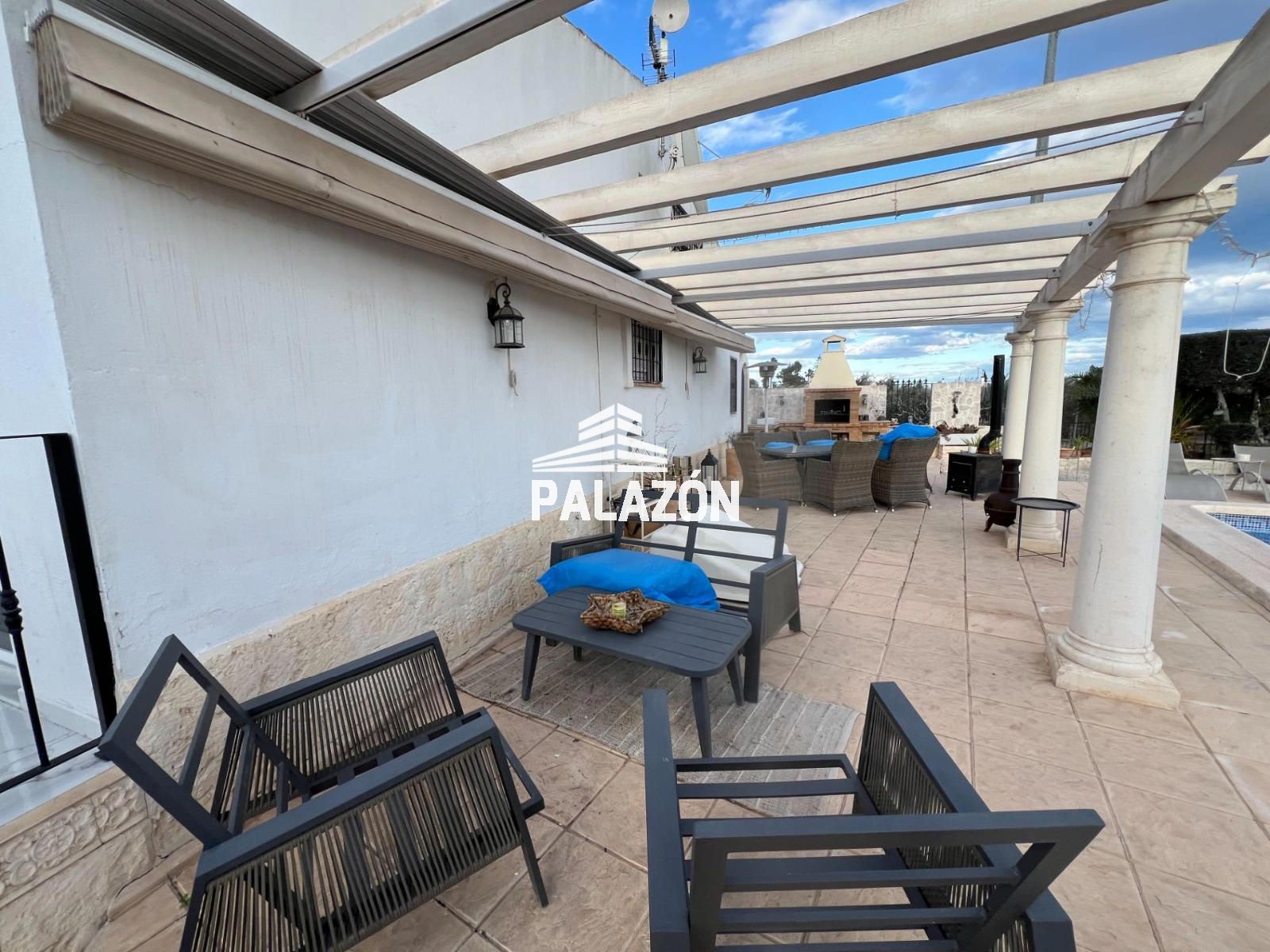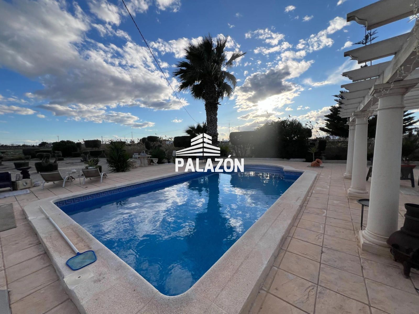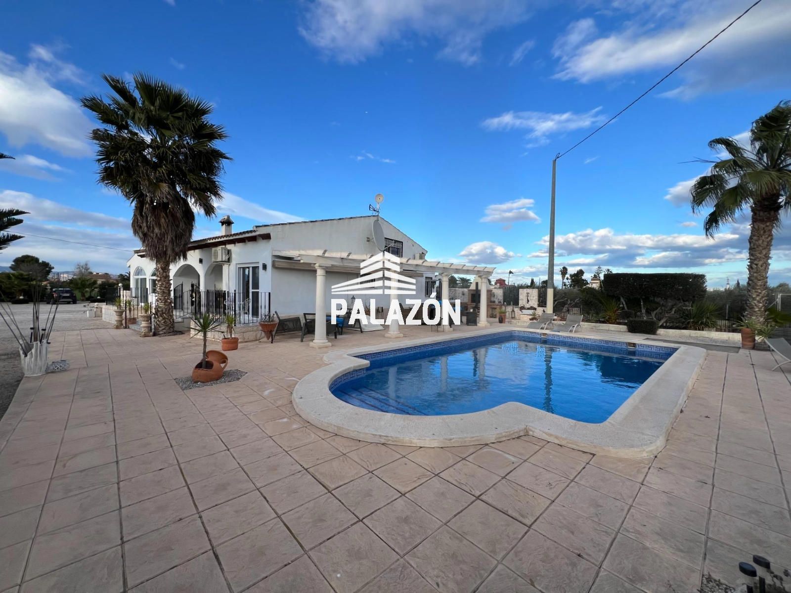 Chalet en venta en Dolores (Alicante), ubicada en un entorno rural tranquilo y privado, sobre una parcela de 2.698 m². La vivienda, construida en 2006, cuenta con 179 m² y está lista para entrar a vivir. Dispone de 3 dormitorios (dos dobles y uno tipo altillo), todos con baño en suite, además de un cuarto baño adicional. Destaca su amplio salón-comedor con gran luminosidad y estufa de leña, junto a una cocina totalmente equipada con isla y electrodomésticos. En el exterior encontramos cuidados jardines con palmeras y olivos, piscina privada, zona de barbacoa, amplias terrazas y patios. La propiedad ofrece aire acondicionado, buena orientación suroeste y un entorno ideal para disfrutar de privacidad y confort.