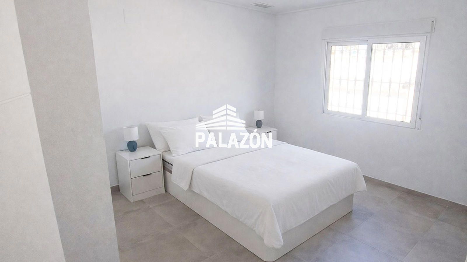 Chalet en venta y alquiler en Catral (Alicante), 147 m², tres dormitorios dobles con armarios empotrados, dos baños (uno en suite), salón amplio, cocina abierta equipada y parcela vallada con espacio exterior para terraza o ocio.